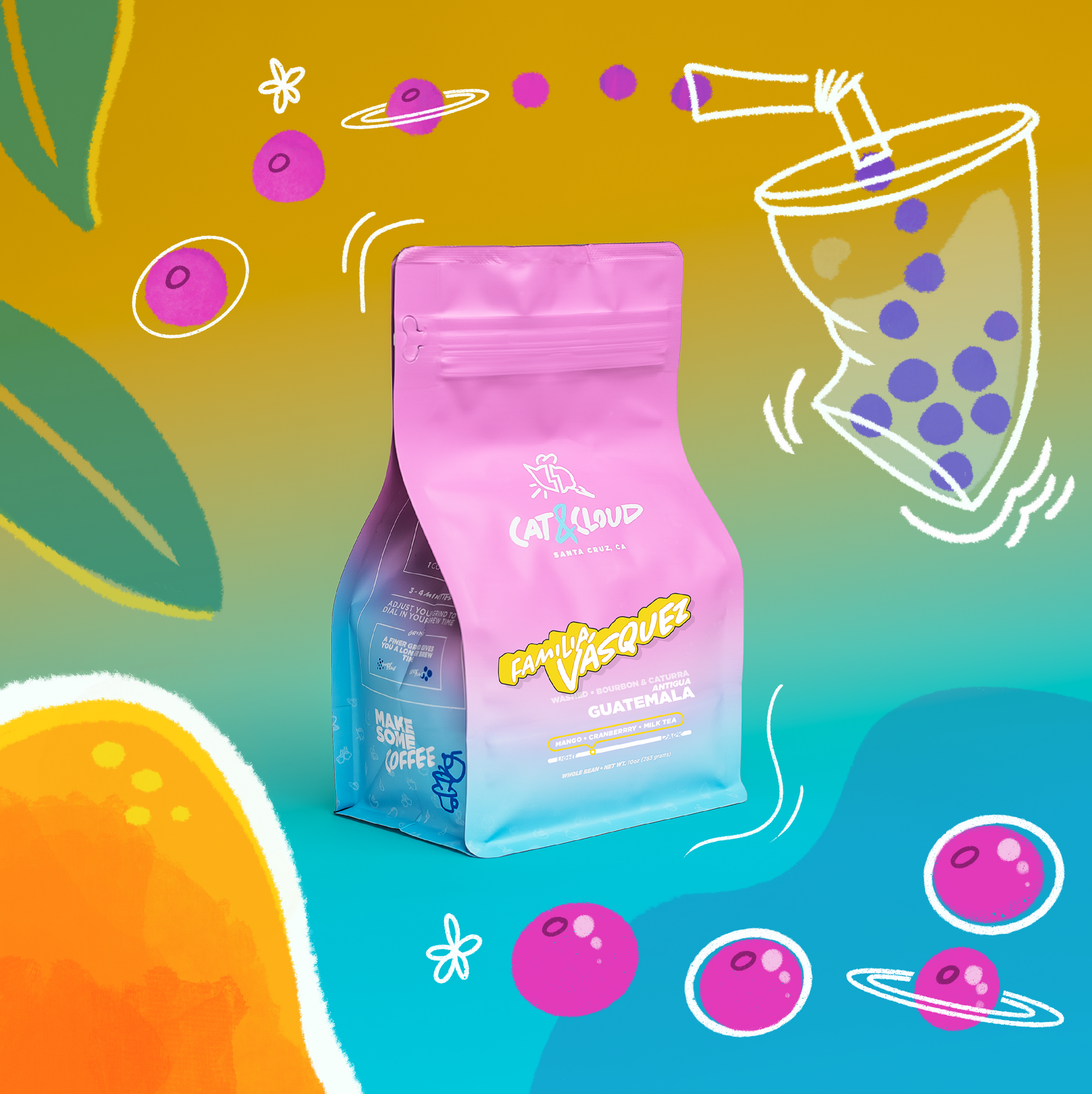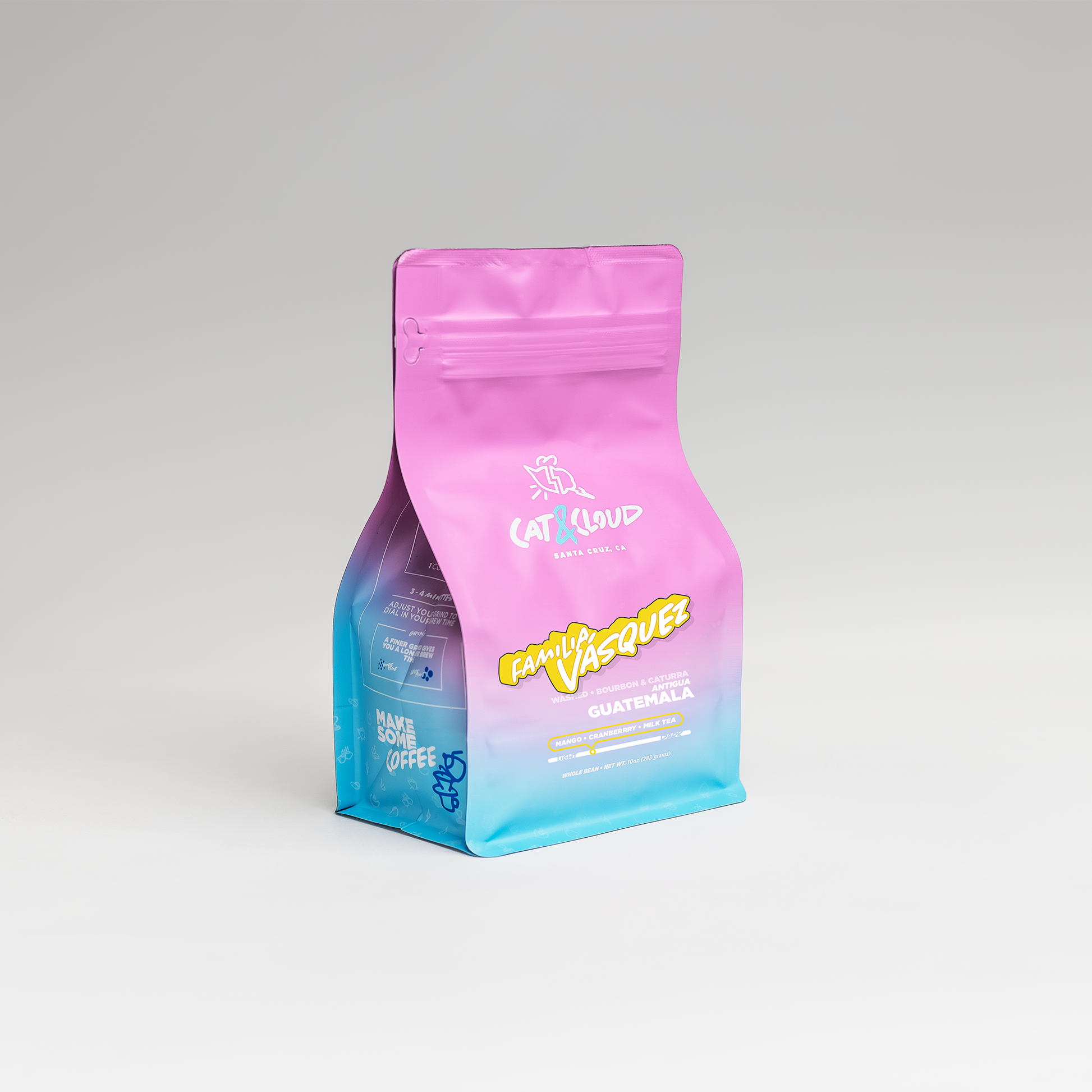 This lot from Familia Vasquez is bright and juicy, with a creamy body and more complexity than we typically find in coffee from Antigua. It opens up with a refreshing pop of fresh mango, and evolves into the pointed acidity and red-toned notes of dried cranberry. The fruit notes are elevated by a complex blend of black tea and creaminess that is reminiscent of Milk Tea, and reflects the medium body of this lovely coffee.